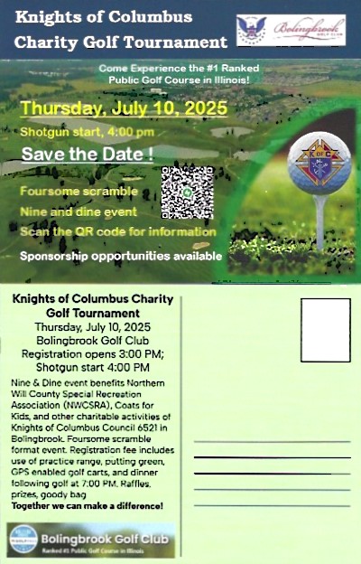 All event proceeds raised from this tournament will directly benefit the various charitable endeavors of the Knights of Columbus Council 6521 in Bolingbrook and surrounding communities; with a significant focus on our biggest activities of the year, our annual Christmas Party for children with intellectual disabilities from the Northern Will County Special Recreation Association (NWCSRA), and our Coats for Kids program. Together we can make a difference!